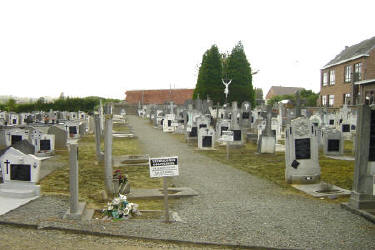 Een algemeen zicht op het oudste deel van het kerkhof van Droeshout (zuidzijde). Links een deel van de 1e uitbreiding (1959).